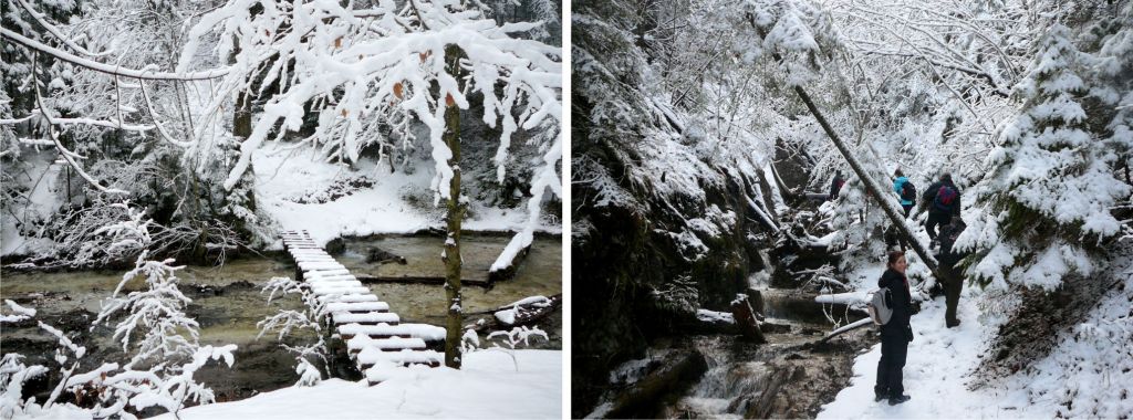 A reggelit követően Hernád-áttörésen indulunk el. Keresztül hatolunk néhány függőhídon, felkúszunk néhány jeges láncon, táncolunk a havas falétrákon, majd egy igazán vadregényes szurdokon felmászunk a Klastorisko-fennsíkra. Itt beviszünk némi meleg teát/forral bort és döntést hozunk, hogy maradt-e még lelkesedés bennünk a Velky Kysel megtekintésére, vagy egyből a kocsikhoz vegyük az irányt.