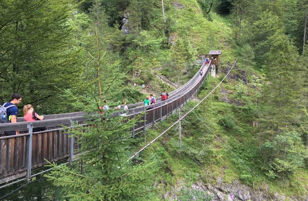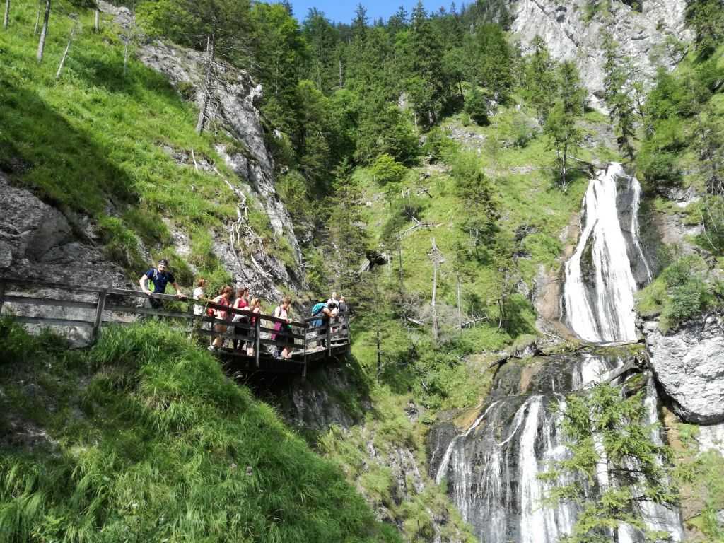 Délben találkozunk a Wasserlochnál, hogy egy „bemelegítő” túrával kezdjük a napot. Átkelünk a Salzán átívelő, 65 méter hosszú függőhídon, melynek tetejéről 21 méter magasról szurkolhatunk az alattunk elhaladó rafthajóknak. Innen két-három órás kényelmes séta-lépcsőzés vár ránk. Utunk felvezet a patak forrásához, ahonnan gyönyörű kilátás nyílik a Salza folyóra és a környező hegyekre. A séta közben nem győzzük a fejünket kapkodni, mert mindenhol víz esik. A bátrak az egyik vízesésben fürödhetnek is! 🙂