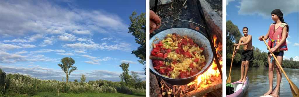 Az evezést időről időre megszakítjuk hosszabb-rövidebb pihenővel, labdázással, pancsolással, napozással. A ‘túra’ fülön olvashatsz bővebben az evezésről és a tábori életről.