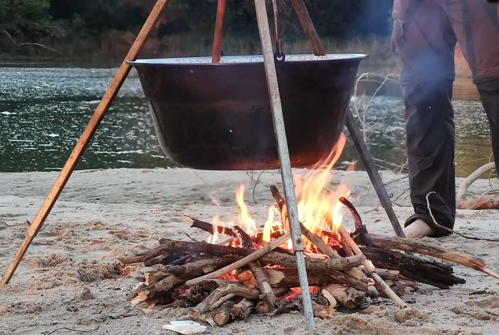 A kikötés után rövidesen neki is látunk a bográcsos finomság elkészítésének. A szuper bográcsvacsora után pedig mehet egy pucér éjszakai fürdés a Drávában.