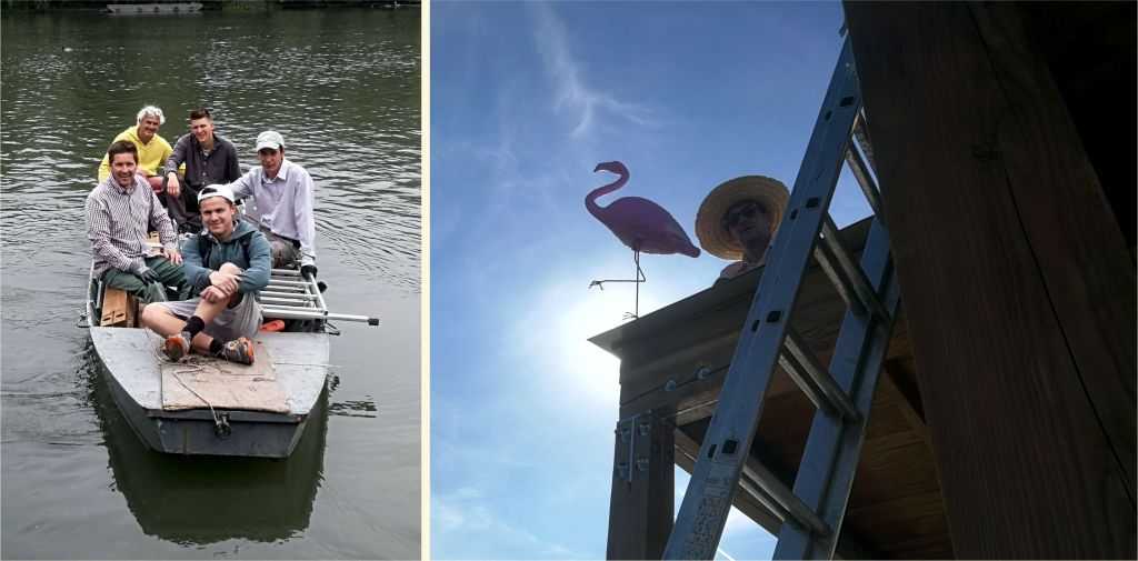 És útbaejtjük a Küszvágó csér kilátót is, aminek a tetejébe az átadó napjára a Jászai Mari díjas (őrült) ácsok egy fröccsöntött flamingót helyeztek ki.